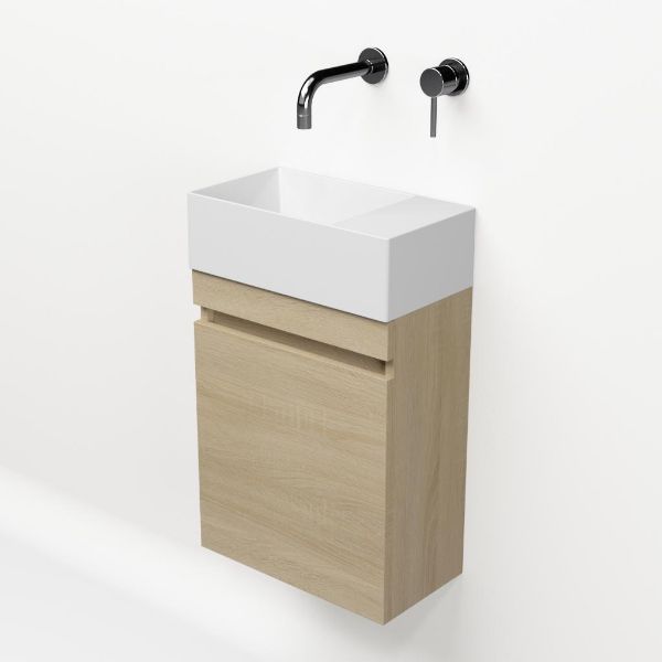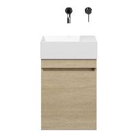 | | Bellanti Bona/Azzurra fonteinmeubel 40x22cm licht eiken met glans wit keramiek fontein ZONDER kraangat links/rechts |