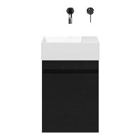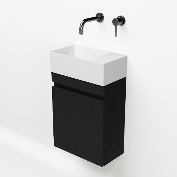 | | Bellanti Bona/Azzurra fonteinmeubel 40x22cm mat zwart eiken met glans wit keramiek fontein ZONDER kraangat links/rechts |