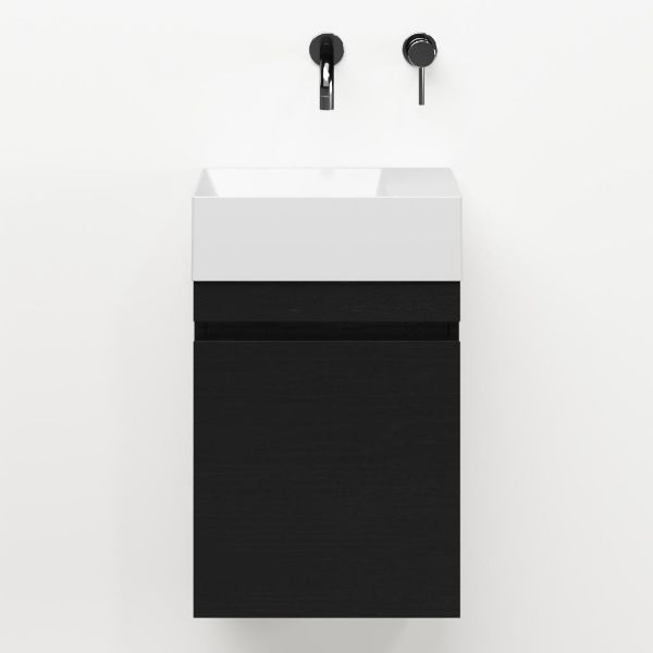 | Bellanti Bona/Azzurra fonteinmeubel 40x22cm mat zwart eiken met glans wit keramiek fontein ZONDER kraangat links/rechts |
