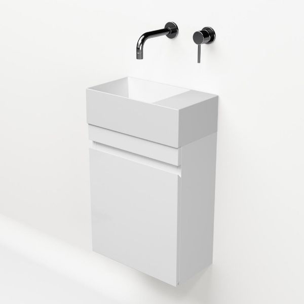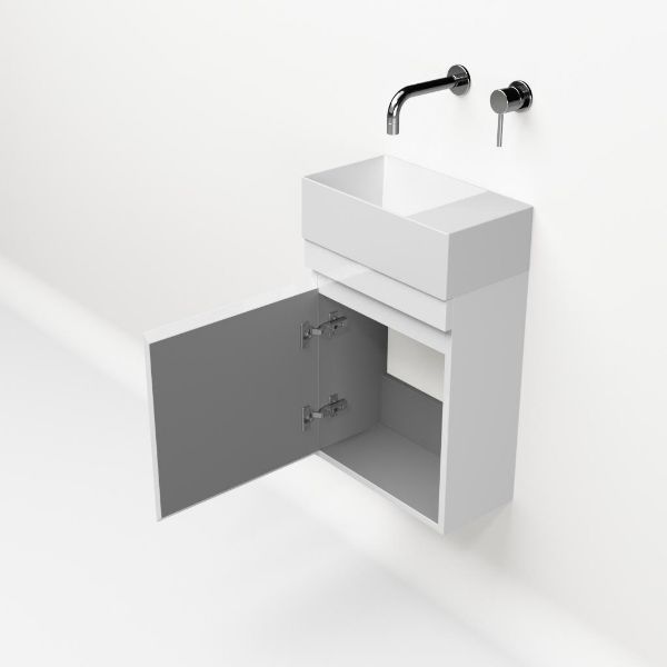 | | Bellanti Bona/Azzurra fonteinmeubel 40x22cm hoogglans wit met mat wit keramiek fontein ZONDER kraangat links/rechts |