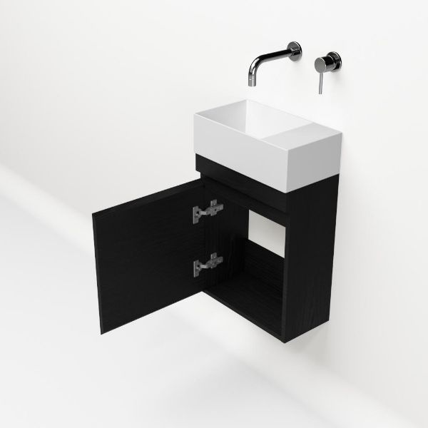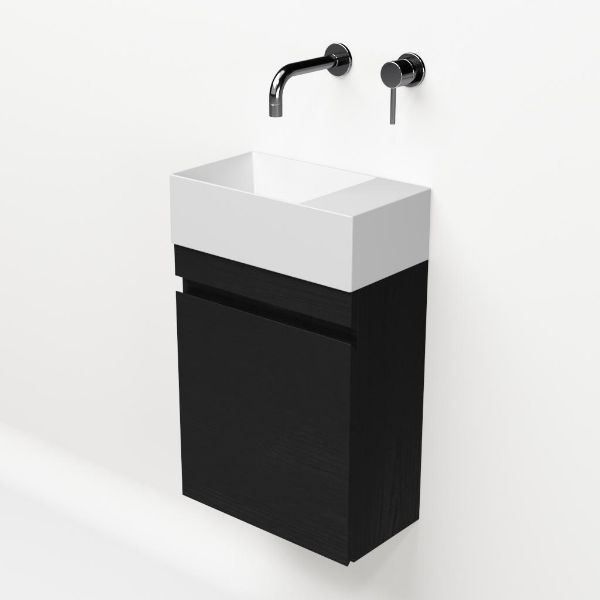 | Bellanti Bona/Azzurra fonteinmeubel 40x22cm mat zwart eiken met mat wit keramiek fontein ZONDER kraangat links/rechts |