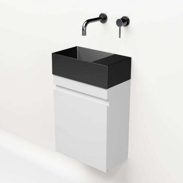 | Bellanti Bona/Azzurra fonteinmeubel 40x22cm hoogglans wit met mat zwart keramiek fontein ZONDER kraangat links/rechts |