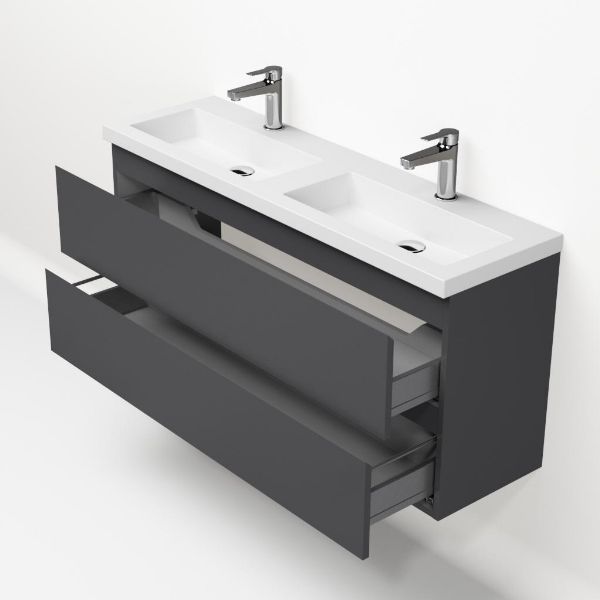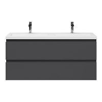 | | Bellanti Secca/Esta ondiep badmeubel 120x36 2 softclose laden mat antraciet greeploos polystone wastafel dubbel wit met 2 kraangaten |