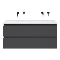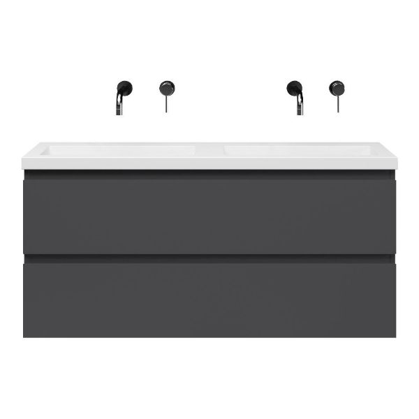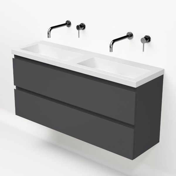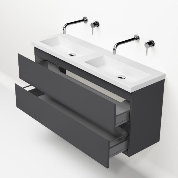 | | Bellanti Secca/Esta ondiep badmeubel 120x36 2 softclose laden mat antraciet greeploos polystone wastafel dubbel wit zonder kraangaten |