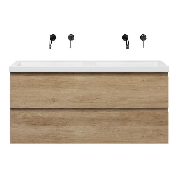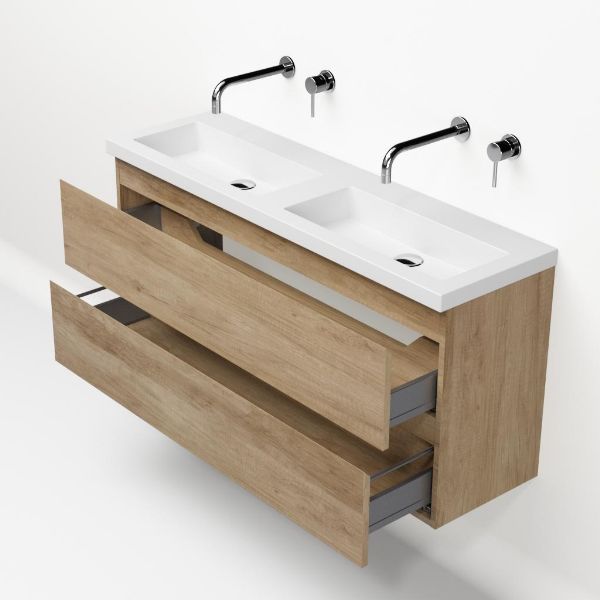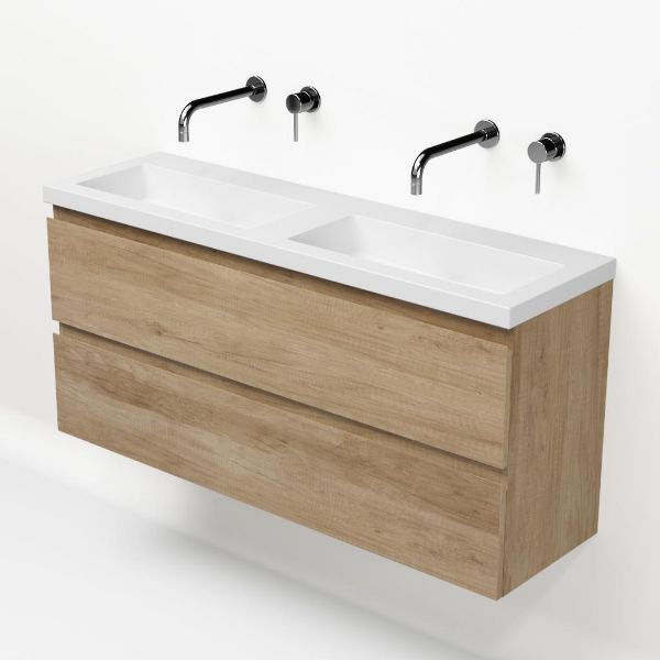 | | Bellanti Secca/Esta ondiep badmeubel 120x36 2 softclose laden olm greeploos polystone wastafel dubbel wit zonder kraangaten |