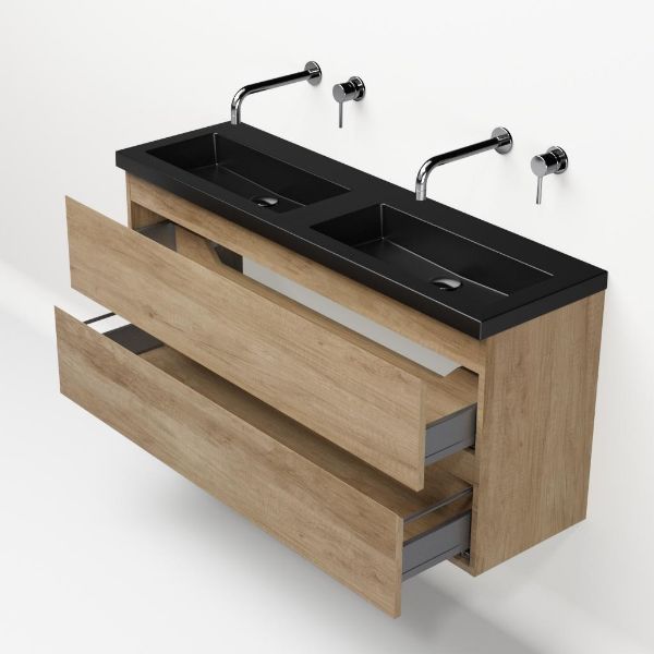 | Bellanti Secca/Esta ondiep badmeubel 120x36 2 softclose laden olm greeploos polystone wastafel dubbel mat zwart zonder kraangaten |