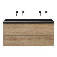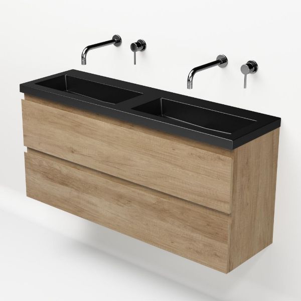 | | Bellanti Secca/Esta ondiep badmeubel 120x36 2 softclose laden olm greeploos polystone wastafel dubbel mat zwart zonder kraangaten |