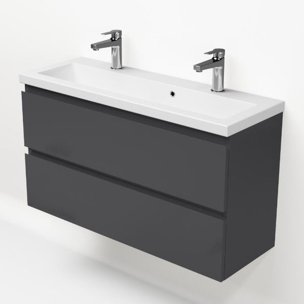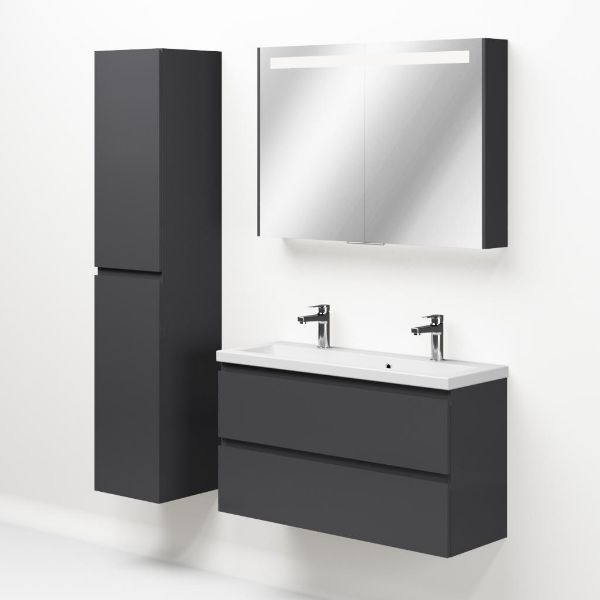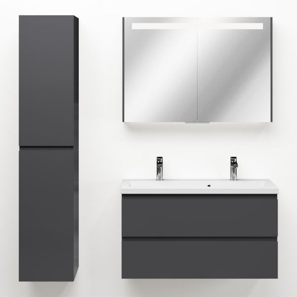 | Bellanti Secca/Amelia ondiep badmeubel 100x36 2 softclose laden antraciet hoogglans greeploos keramische wastafel wit met 2 kraangaten |