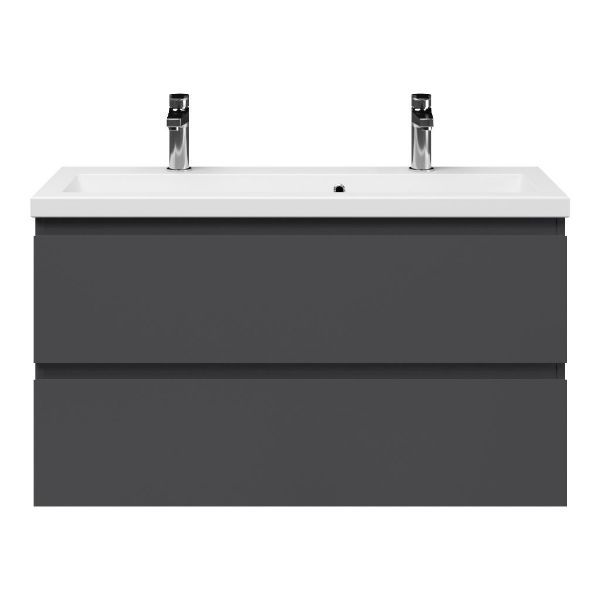 | Bellanti Secca/Amelia ondiep badmeubel 100x36 2 softclose laden antraciet mat greeploos keramische wastafel wit met 2 kraangaten |