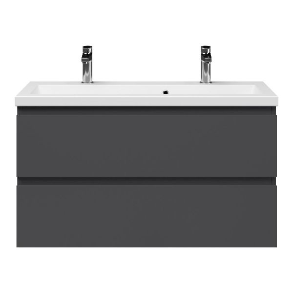 | | Bellanti Secca/Amelia ondiep badmeubel 100x36 2 softclose laden antraciet mat greeploos keramische wastafel mat wit met 2 kraangaten |