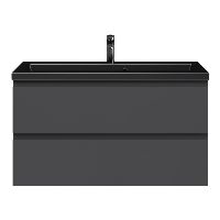 | | Bellanti Secca/Amelia ondiep badmeubel 100x36 2 softclose laden antraciet mat greeploos keramische wastafel mat zwart met 1 kraangaten |