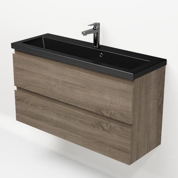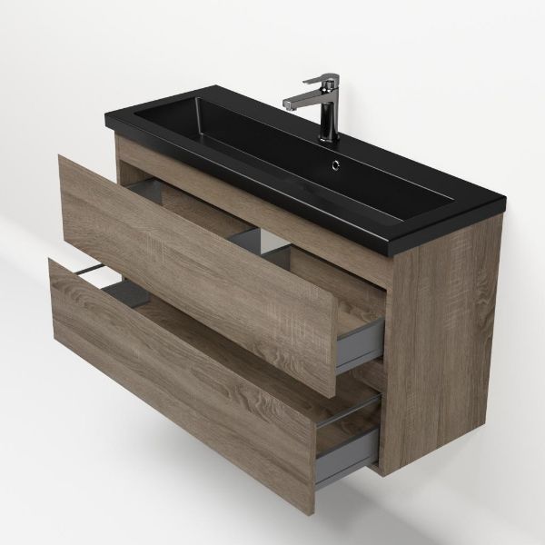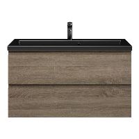 | | Bellanti Secca/Amelia ondiep badmeubel 100x36 2 softclose laden donker eiken greeploos keramische wastafel mat zwart met 1 kraangaten |