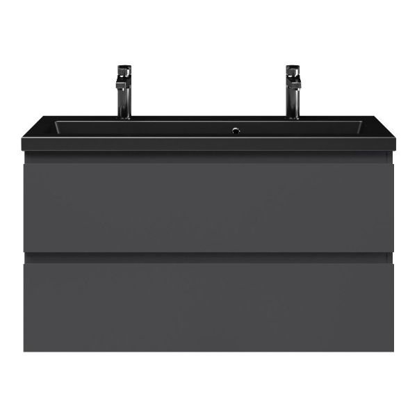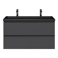 | | Bellanti Secca/Amelia ondiep badmeubel 100x36 2 softclose laden antraciet mat greeploos keramische wastafel mat zwart met 2 kraangaten |