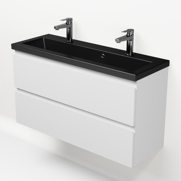 | Bellanti Secca/Amelia ondiep badmeubel 100x36 2 softclose laden wit mat greeploos keramische wastafel mat zwart met 2 kraangaten |