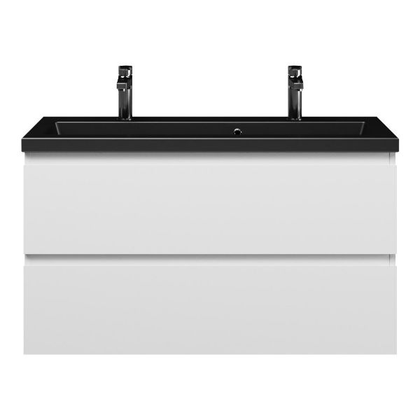 | | Bellanti Secca/Amelia ondiep badmeubel 100x36 2 softclose laden wit mat greeploos keramische wastafel mat zwart met 2 kraangaten |