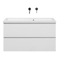 | | Bellanti Secca/Amelia ondiep badmeubel 100x36 2 softclose laden wit hoogglans greeploos keramische wastafel mat wit zonder kraangaten |