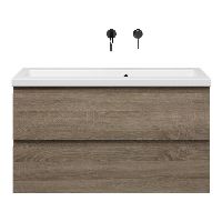 | Bellanti Secca/Amelia ondiep badmeubel 100x36 2 softclose laden donker eiken greeploos keramische wastafel mat wit zonder kraangaten |