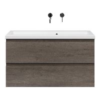 | Bellanti Secca/Amelia ondiep badmeubel 100x36 2 softclose laden olm donker grijs greeploos keramische wastafel mat wit zonder kraangaten |