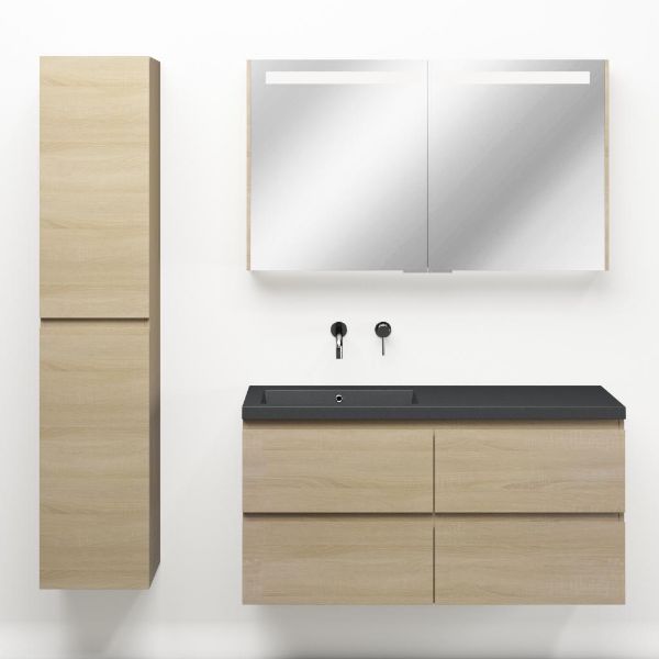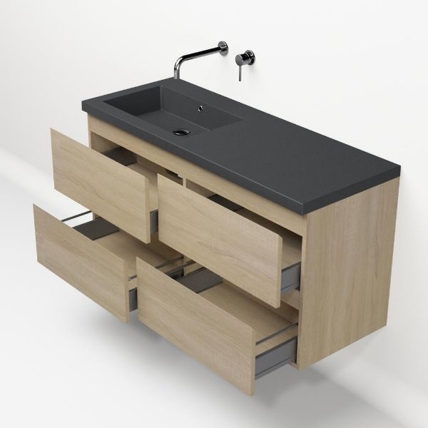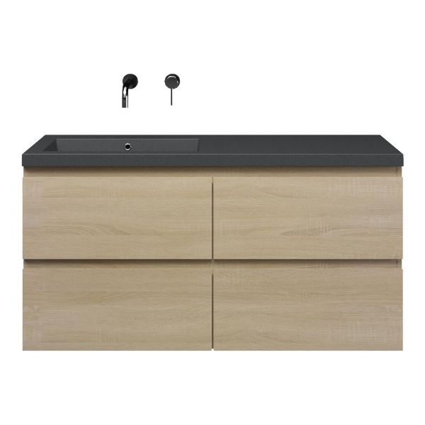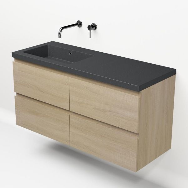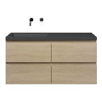 | | Bellanti Elena/Esta-Q badmeubel 120x46 4 softclose laden eiken licht greeploos quartz wastafel mat grijs links zonder kraangaten |