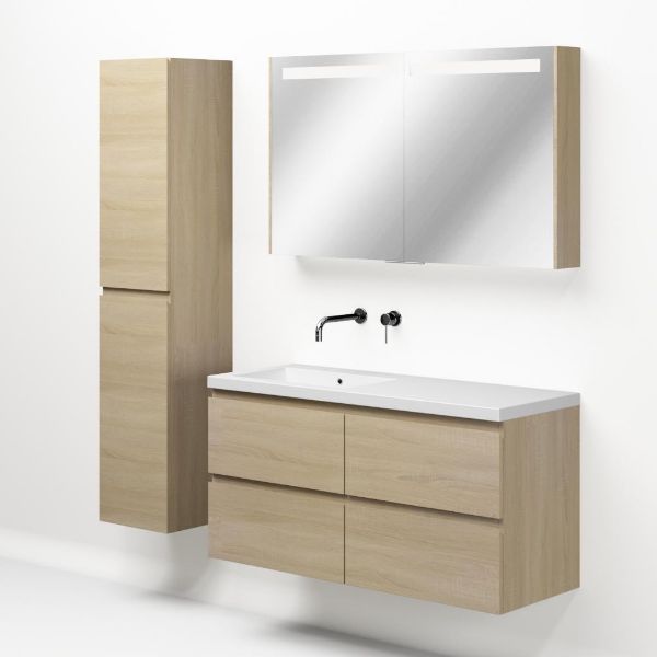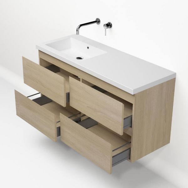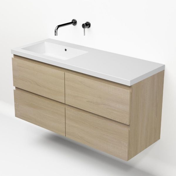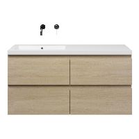 Bellanti Elena/Esta-Q badmeubel 120x46 4 softclose laden eiken licht greeploos quartz wastafel mat wit links zonder kraangaten