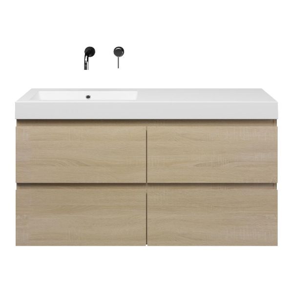 | | Bellanti Elena/Esta-Q badmeubel 120x46 4 softclose laden eiken licht greeploos quartz wastafel mat wit links zonder kraangaten |
