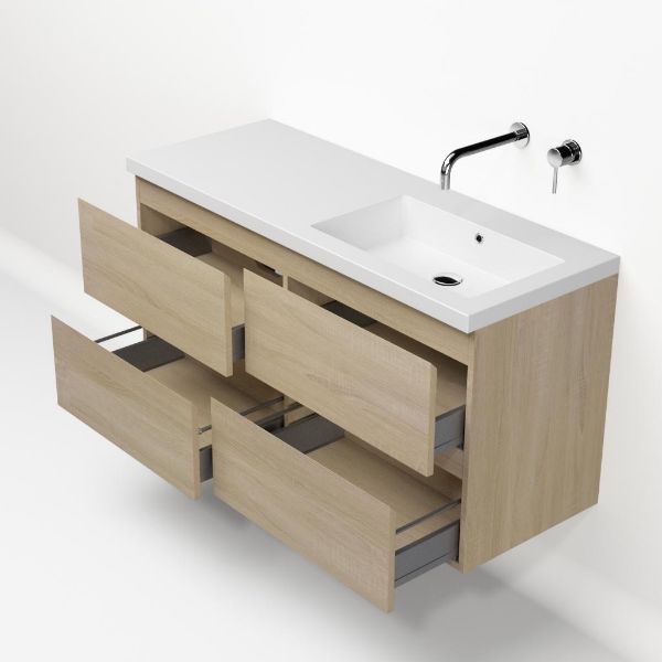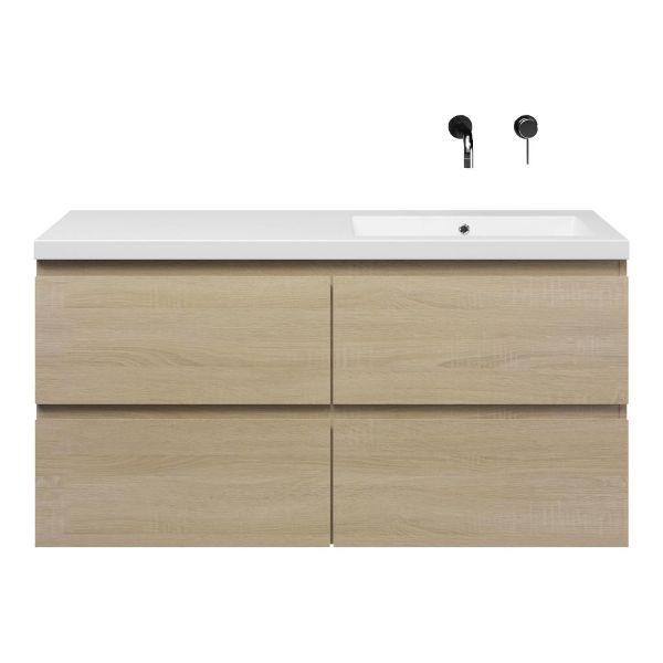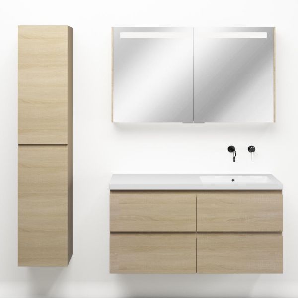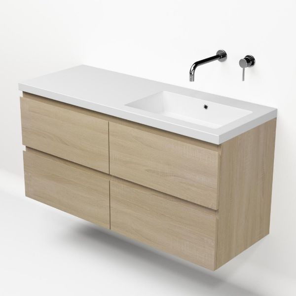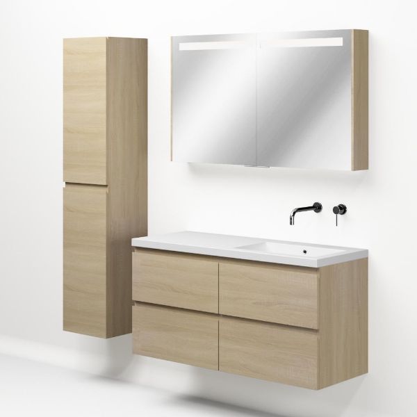 | Bellanti Elena/Esta-Q badmeubel 120x46 4 softclose laden eiken licht greeploos polystone wastafel mat wit rechts zonder kraangaten |
