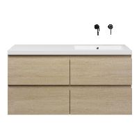 | | Bellanti Elena/Esta-Q badmeubel 120x46 4 softclose laden eiken licht greeploos polystone wastafel mat wit rechts zonder kraangaten |