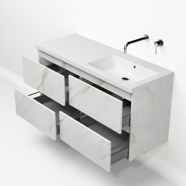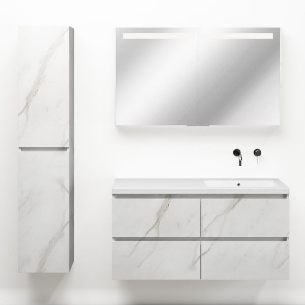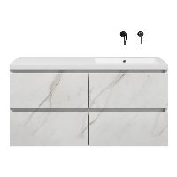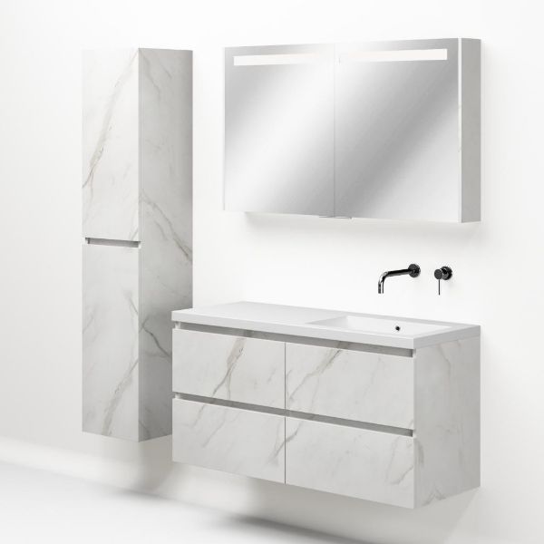 | Bellanti Elena/Esta-Q badmeubel 120x46 4 softclose laden marmer structuur wit greeploos polystone wastafel mat wit rechts zonder kraangaten |