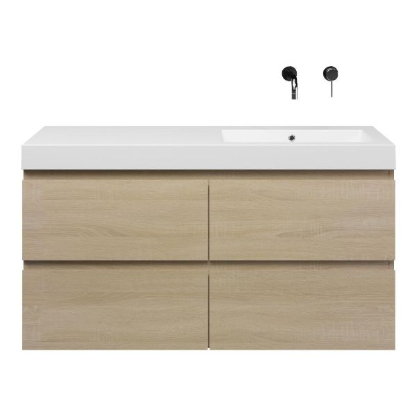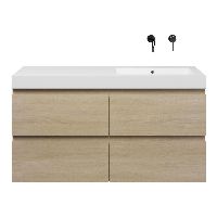 | | Bellanti Elena/Esta-Q badmeubel 120x46 4 softclose laden eiken licht greeploos quartz wastafel mat wit rechts zonder kraangaten |
