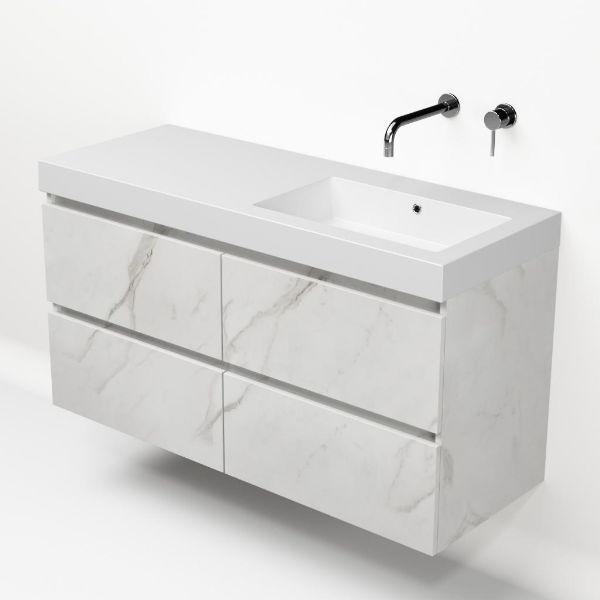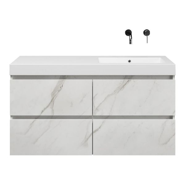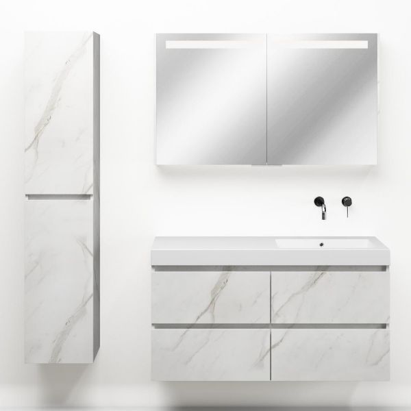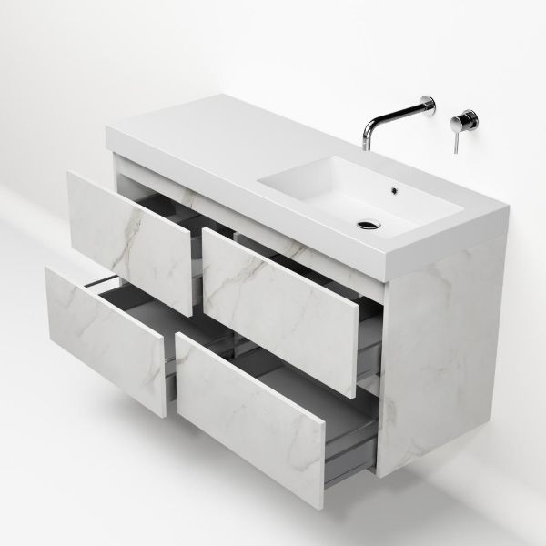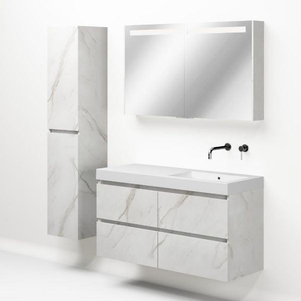 | | Bellanti Elena/Esta-Q badmeubel 120x46 4 softclose laden marmer structuur wit greeploos quartz wastafel mat wit rechts zonder kraangaten |
