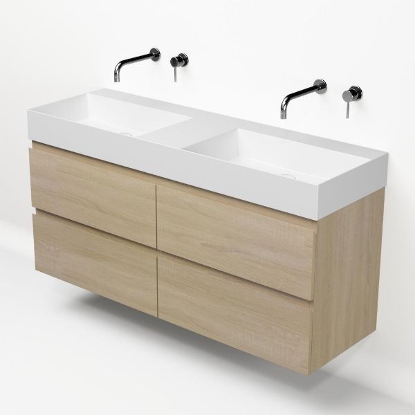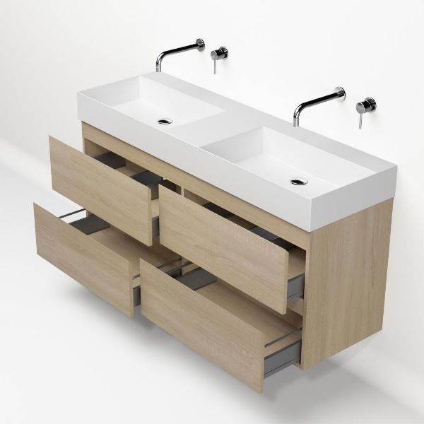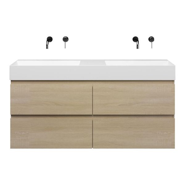 | Bellanti Elena/Azzurra badmeubel 140x46 4 softclose laden licht eiken greeploos keramische wastafel dubbel wit mat zonder kraangaten |