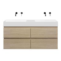 | | Bellanti Elena/Azzurra badmeubel 140x46 4 softclose laden licht eiken greeploos keramische wastafel dubbel wit mat zonder kraangaten |