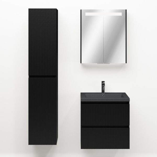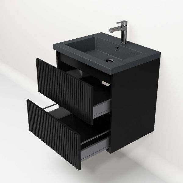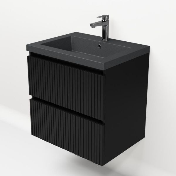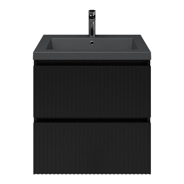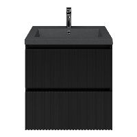 | Bellanti Silvan/Esta-Q badmeubel 60x46 2 softclose laden met ribbel - latjes structuur mat zwart greeploos quartz wastafel mat grijs met 1 kraangat |