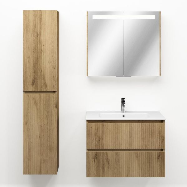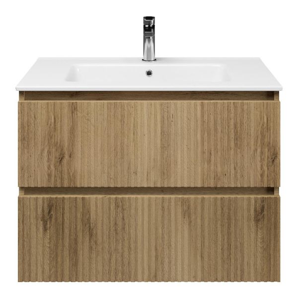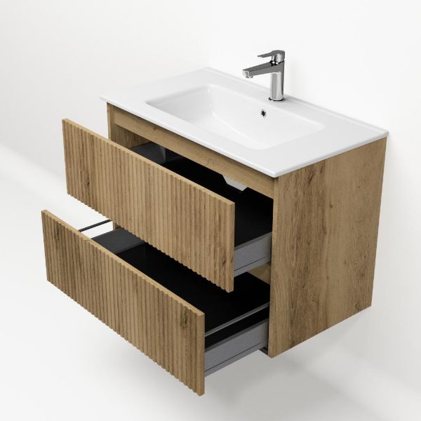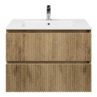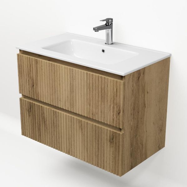 | Bellanti Silvan/Etna badmeubel 80x46 2 softclose laden met ribbel - latjes structuur warm eiken greeploos keramische wastafel wit met 1 kraangat |