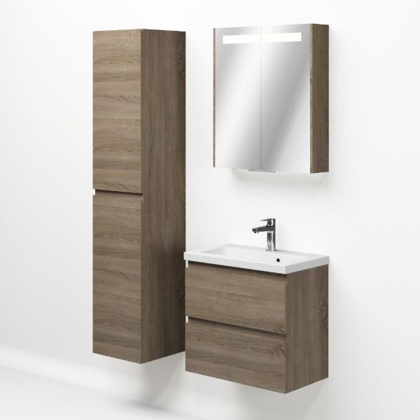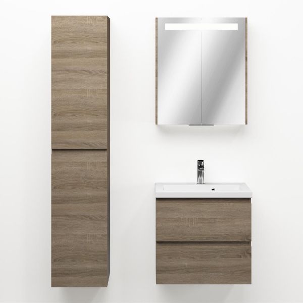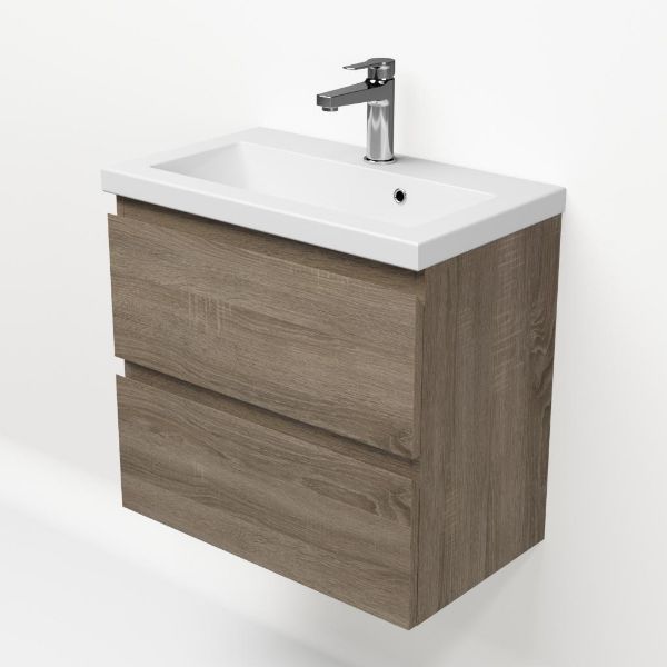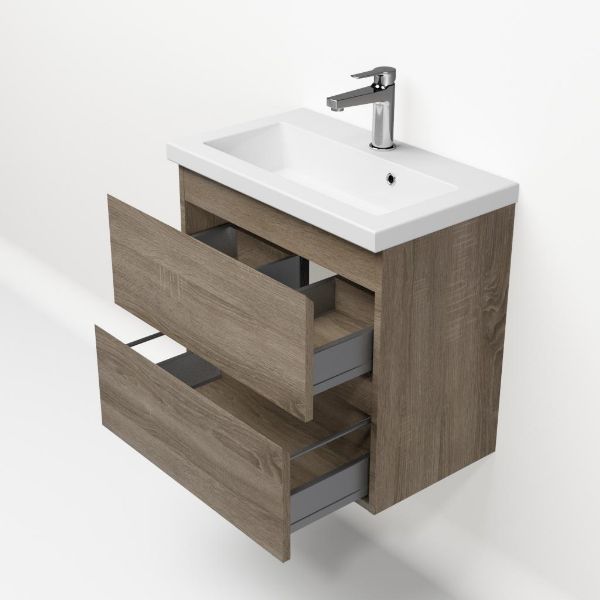 | | Bellanti Secca/Amelia ondiep badmeubel 60x36 2 softclose laden donker eiken greeploos keramische wastafel wit met 1 kraangat |