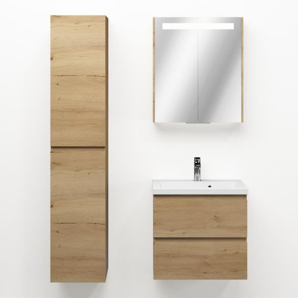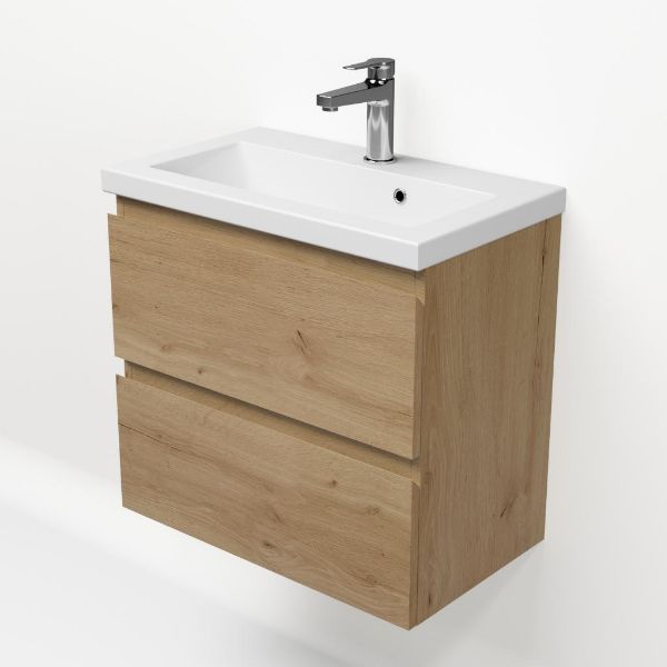 | | Bellanti Secca/Amelia ondiep badmeubel 60x36 2 softclose laden eiken natuur greeploos keramische wastafel wit met 1 kraangat |