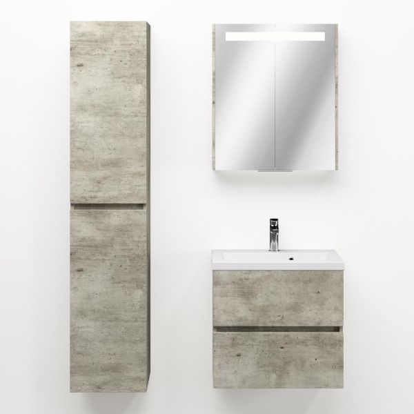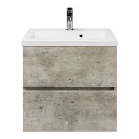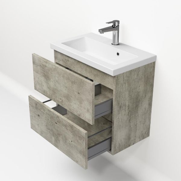 | Bellanti Fabia/Amelia ondiep badmeubel 60x36 2 softclose laden steigerhout licht grijs greeploos keramische wastafel wit met 1 kraangat |
