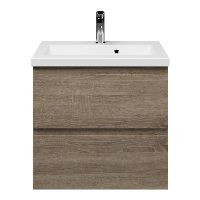 | Bellanti Secca/Amelia ondiep badmeubel 60x36 2 softclose laden donker eiken greeploos keramische wastafel mat wit met 1 kraangat |