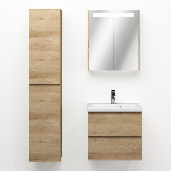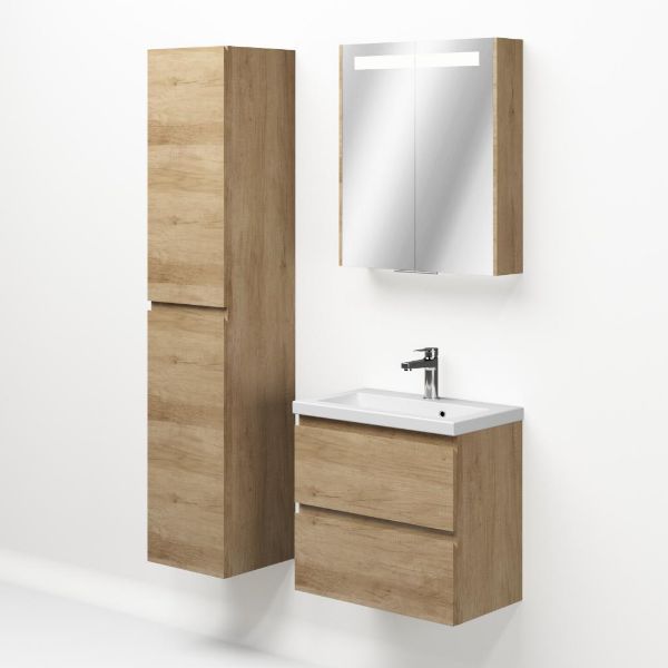 | | Bellanti Secca/Amelia ondiep badmeubel 60x36 2 softclose laden olm greeploos keramische wastafel mat wit met 1 kraangat |