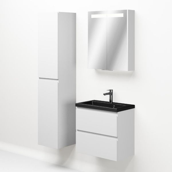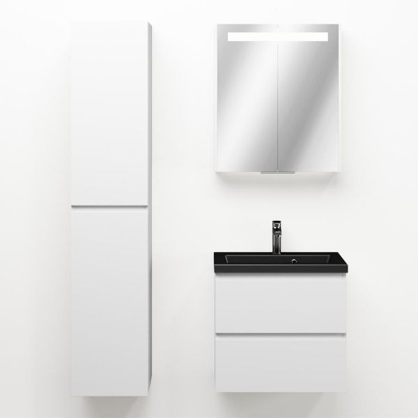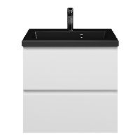 | | Bellanti Secca/Amelia ondiep badmeubel 60x36 2 softclose laden wit mat greeploos keramische wastafel mat zwart met 1 kraangat |