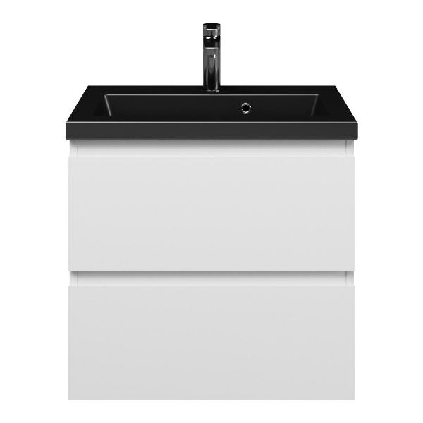 | Bellanti Secca/Amelia ondiep badmeubel 60x36 2 softclose laden wit mat greeploos keramische wastafel mat zwart met 1 kraangat |