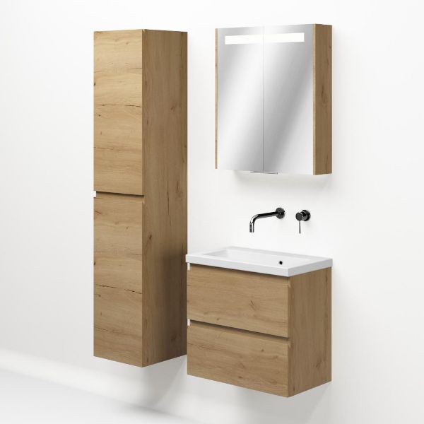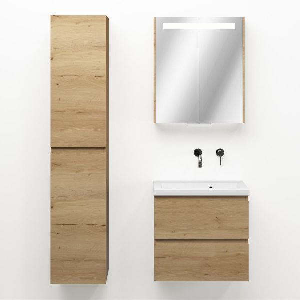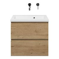 | | Bellanti Secca/Amelia ondiep badmeubel 60x36 2 softclose laden eiken natuur greeploos keramisch wastafel wit zonder kraangaten |