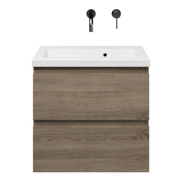 | | Bellanti Secca/Amelia ondiep badmeubel 60x36 2 softclose laden donker eiken greeploos keramisch wastafel wit zonder kraangaten |