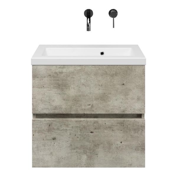 | | Bellanti Fabia/Amelia ondiep badmeubel 60x36 2 softclose laden steigerhout licht grijs greeploos keramisch wastafel mat wit zonder kraangaten |