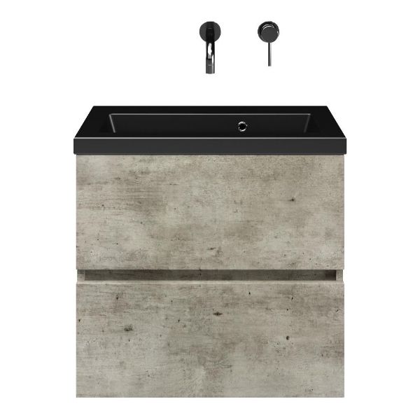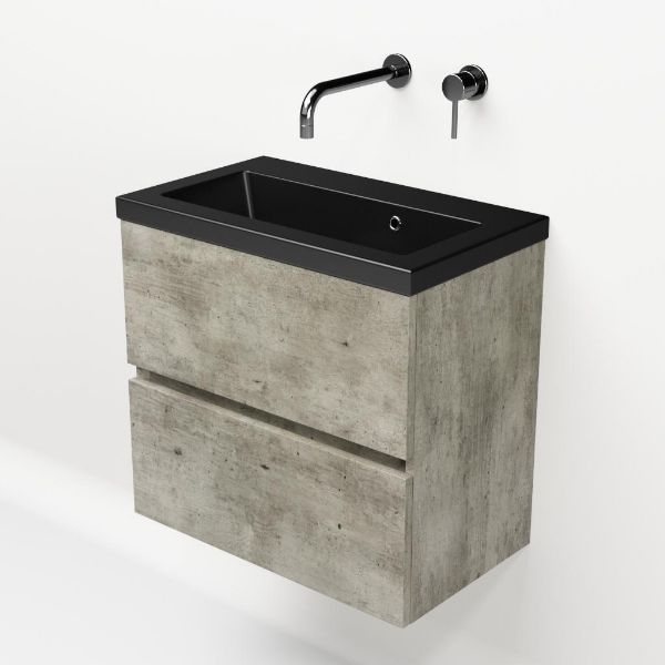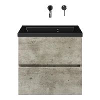 | | Bellanti Fabia/Amelia ondiep badmeubel 60x36 2 softclose laden steigerhout licht grijs greeploos keramisch wastafel mat zwart zonder kraangaten |