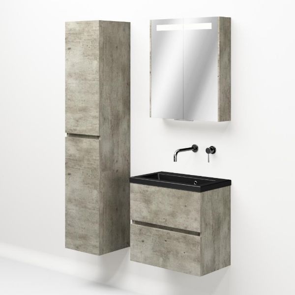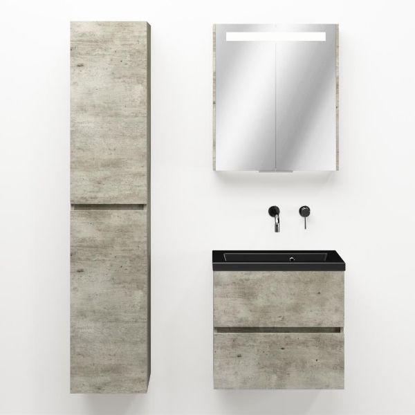| Bellanti Fabia/Amelia ondiep badmeubel 60x36 2 softclose laden steigerhout licht grijs greeploos keramisch wastafel mat zwart zonder kraangaten |