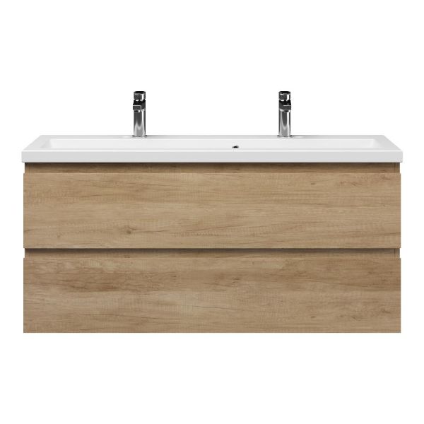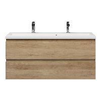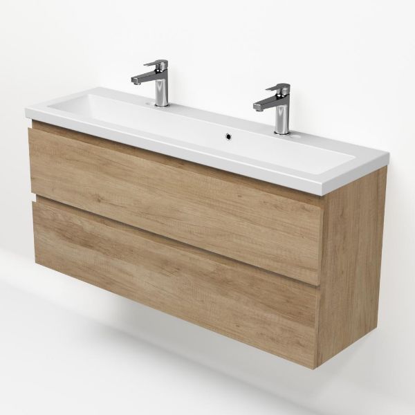 | Bellanti Secca/Amelia ondiep badmeubel 120x36 2 softclose laden olm greeploos keramische wastafel mat wit met 2 kraangaten |