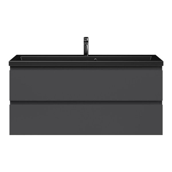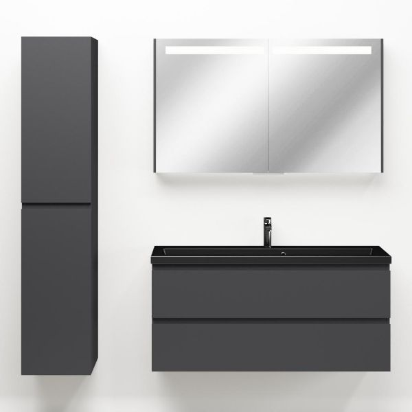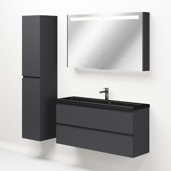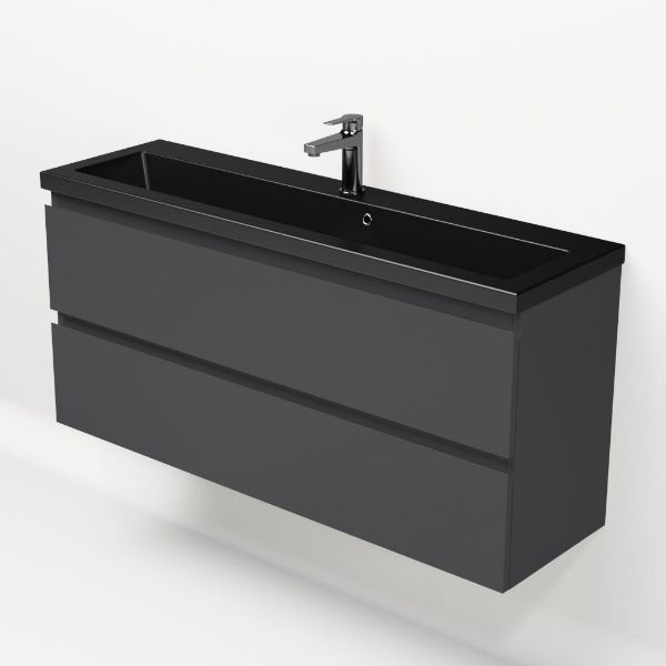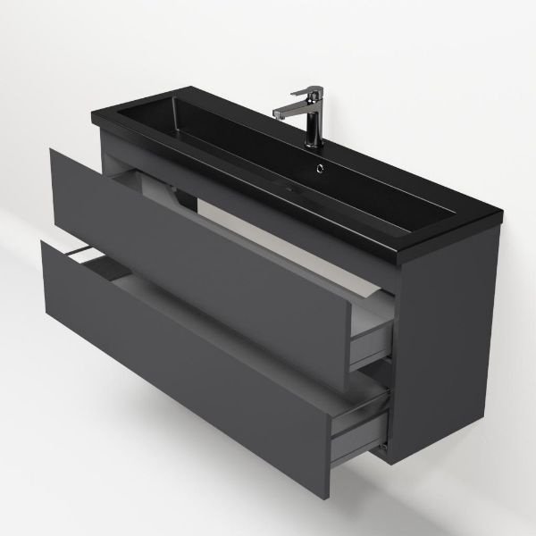 | Bellanti Secca/Amelia ondiep badmeubel 120x36 2 softclose laden mat antraciet greeploos keramische wastafel mat zwart met 1 kraangat |
