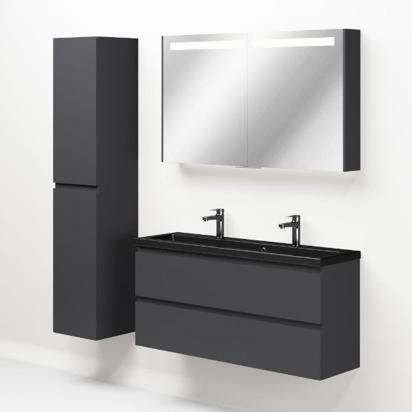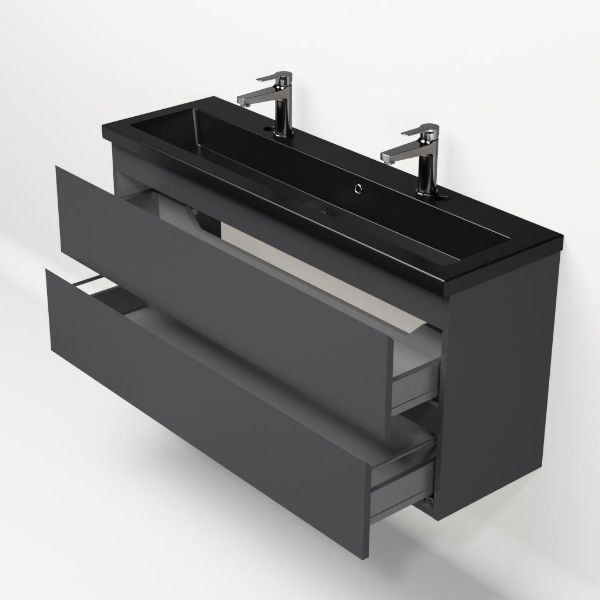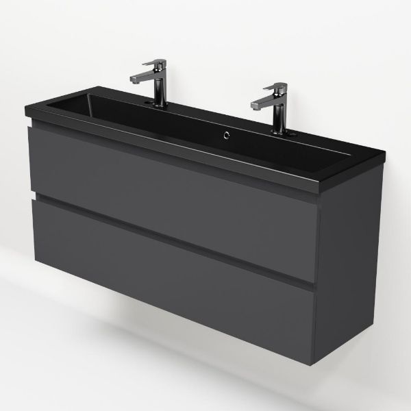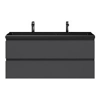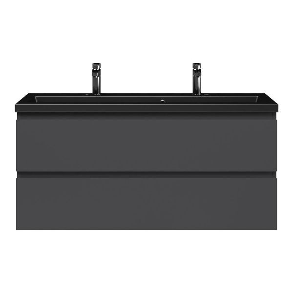| Bellanti Secca/Amelia ondiep badmeubel 120x36 2 softclose laden mat antraciet greeploos keramische wastafel mat zwart met 2 kraangaten |