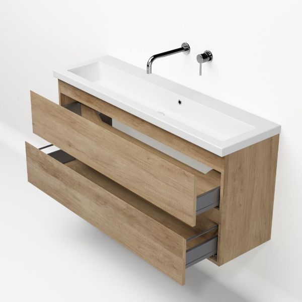 | Bellanti Secca/Amelia ondiep badmeubel 120x36 2 softclose laden olm greeploos keramische wastafel wit zonder kraangaten |